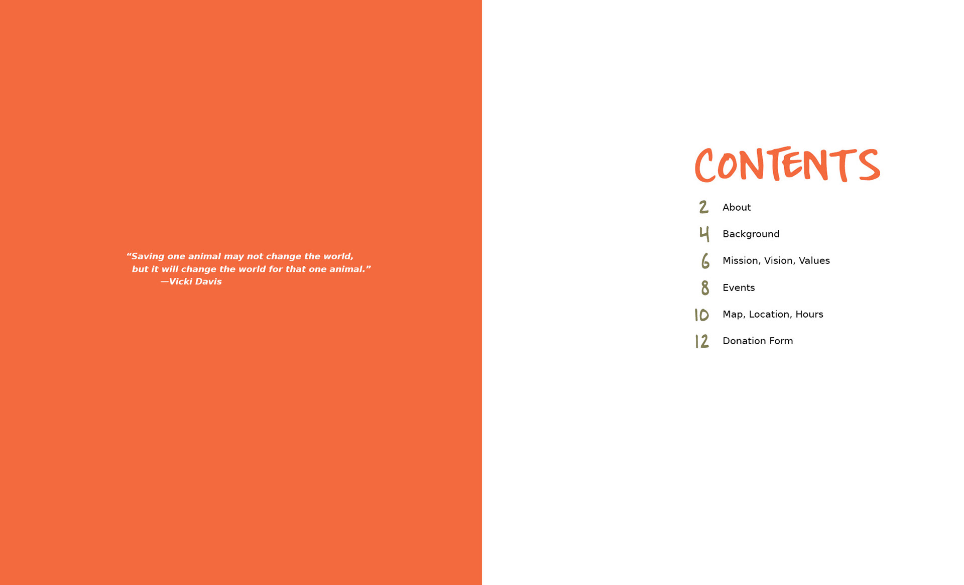 This booklet was designed for the South West Washington Humane Society. They provided the copy, I used found photography and hand lettered all of the headings and maps.