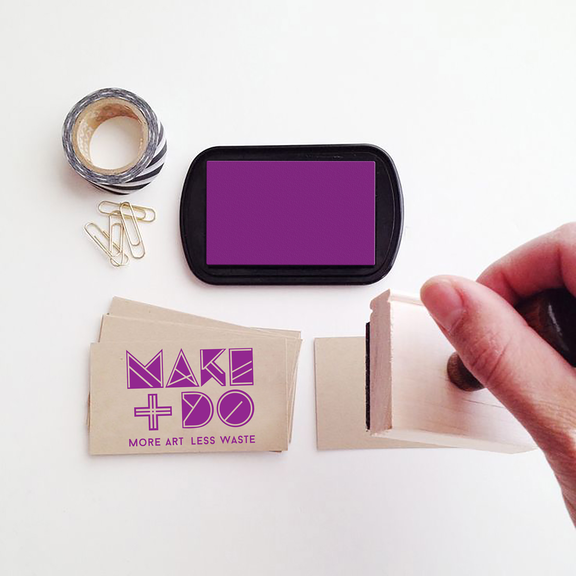Make + Do will be known for it’s ability to recycle already used materials and incorporating this into the branding will help the public connect to the feeling of sustainability. Ultimately, this project will support a sustainable facility that not only brings the art and design community together but also eases the economic and ecologic burden placed on students and the environment. The concept behind the Make + Do brand is based upon the idea of making do and getting by with what is available rather than purchasing new items. The brand also serves as a call to action by promoting the idea of making and doing beautiful new things with reused materials. The combined use of warm, bright colors and abstract letter-forms makes the brand inviting but also new and intriguing. The main obstacle for this program is visibility and awareness so an abundance of promotional collateral is necessary. These objects will be created with reused materials almost exclusively so the production of a stamp and/or stencil that can be applied those materials is crucial.